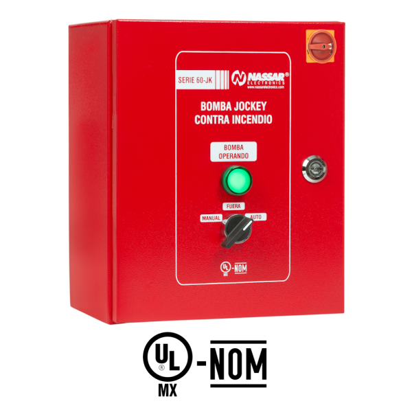 Firefighting panel for jockey pump, controls the automatic operation of jockey pumps, includes the starter, Manual-Off-Automatic selector, and Pump Operating indicator pilot.
