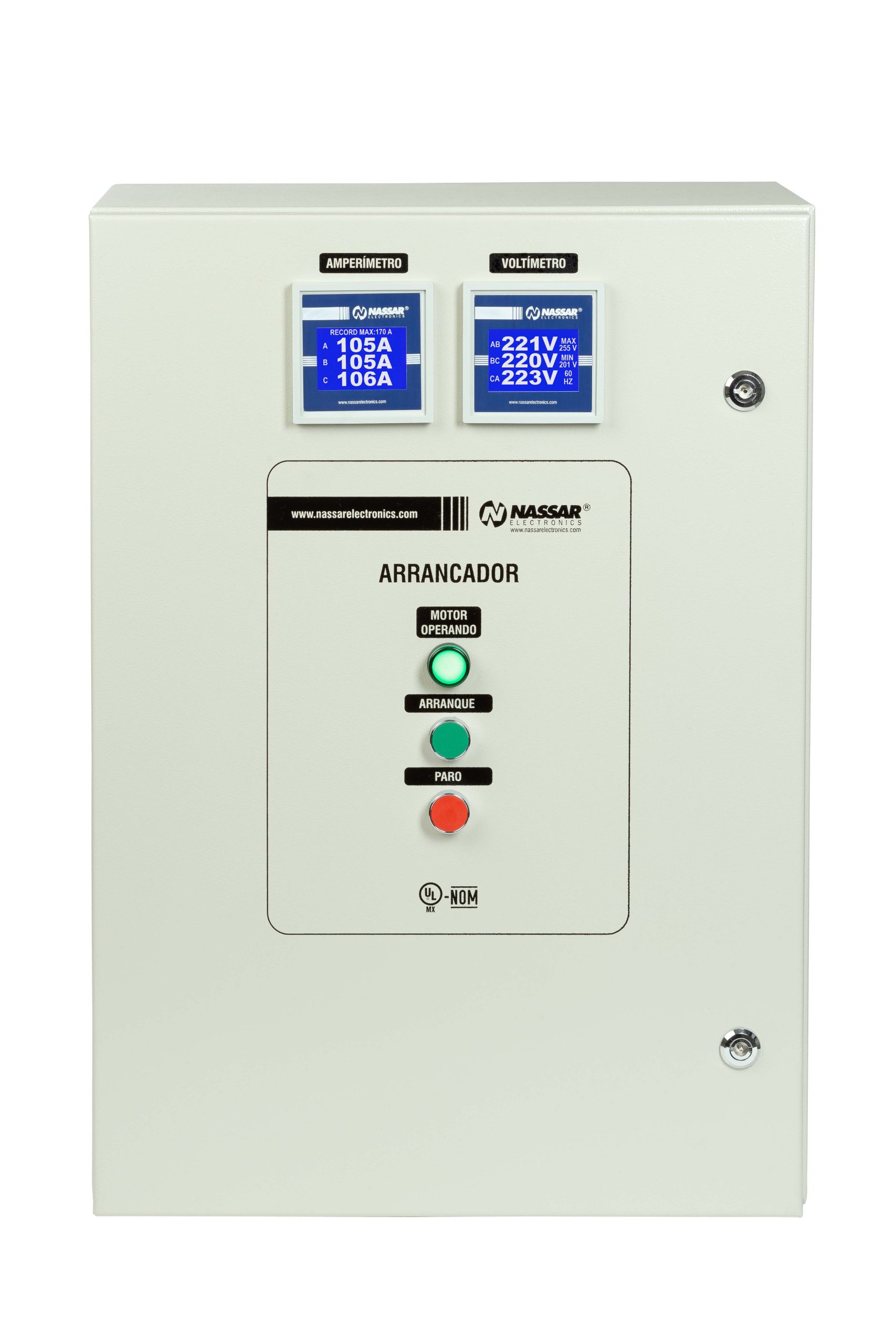 - Three-phase RMS digital ammeter with max current recording. Mounted on the cabinet door.